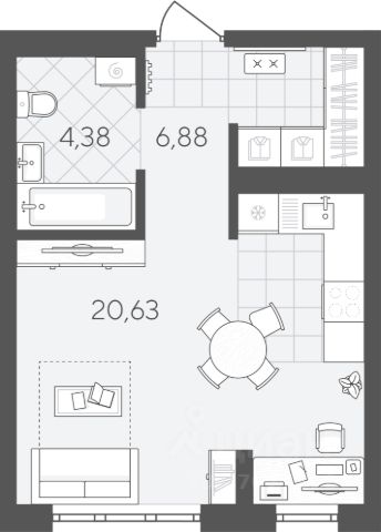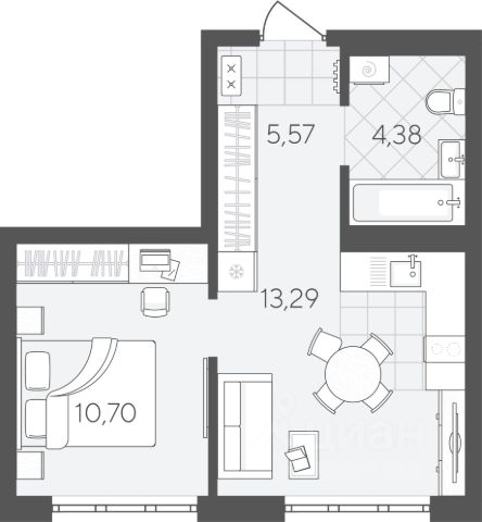 Квартира 55 на 6 этаже. "Скандиа. Квартал в Слободе" — современная комплексная застройка в развитом районе, состоящая из двух домов переменной этажности и двух многоуровневых паркингов. Доминантами проекта станут две 24-этажные секции. Квартал расположен через дорогу от гимназии 4, рядом со сквером Вьюжный и лесопарком. В шаговой доступности 2 детских сада, остановка общественного транспорта, поликлиника, магазины и кофейни. Квартира с 1 спальней площадью 36,31 кв.м В квартире есть кухня-гостиная и отдельная спальня, предусмотрены ниши под шкафы-купе. Это позволяет оставить больше пространства для жизни. В кухне-гостиной можно поставить раскладной диван, который, при необходимости, будет дополнительным спальным местом.