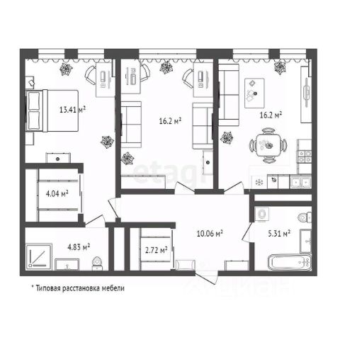 • ✅ Минимальная площадь: 43,1 м²