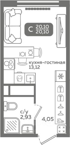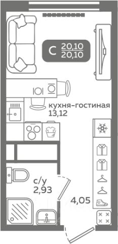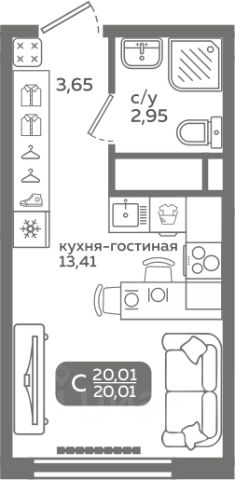 1-комн. квартира-студия с предчистовой отделкой в ЖК "Прео" на 10 этаже. Общая площадь: 34.51 кв.м., площадь гостиной 23.97 кв.м., из которых 5 кв.м. выделено под кухонную зону. Все окна выходят на одну сторону. В квартире один балкон, один совмещенный санузел. Высота потолков 2.7 м.