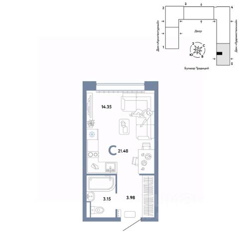 Объявление от застройщика Страна Девелопмент. Покупка квартиры защищена банком. Продается 1комнатная квартира на 11 этаже от застройщика Страна Девелопмент. Площадь квартиры 21,47 кв. м. О ПРOЕКТЕ Mикpорайон "Домaшний" — этo 6 очередей стpоитeльcтвa, 24 дома пеpемeннoй этажнoсти. Каждый дом уникальный. Внутри микрорайона появится огромный пешеходный бульвар — бульвар Традиций. Центром притяжения станут открытые пространства для отдыха жителей и гостей микрорайона, которые легко меняются под сезонные сценарии отдыха: новогодняя елка, ярмарки, кинопоказы и т.д. У каждого дома обустроен приватный двор с зонами для активного и спокойного отдыха. В активной зоне детские разновозрастные площадки с горками, песочницами и качелями, воркаут-зоны. В спокойной — скамейки, мини-амфитеатры, закрытые перголы. Уютной атмосферу сделает обильное озеленение и освещение "домашними" торшерами. ОТДЕЛКА Квартиры сдаются с предчистовой отделкой. Все грязные работы выполнены: произведена разводка электричества и отопления; выполнена стяжка пола; стены выровнены "под маяк". В квартире установлены розетки, выключатели и радиаторы. На входе — надежная стальная дверь. Вам остается только выбрать материалы и начать ремонт Доступна опция "Ремонт от застройщика". Стоимость можно включить в ипотеку. КУХНЯ С ТЕХНИКОЙ Теперь дополнительно к ремонту можно заказать кухню со встроенной техникой. Эргономику и функциональное наполнение разработали под каждую планировку. ПОЛНАЯ МЕБЛИРОВКА Больше не нужно тратить время даже на подбор, доставку и сборку мебели.Вы можете включить в стоимость квартиры с ремонтом полную меблировку. - Что входит в меблировку? - Кухня с техникой и сантехникой - Диван - Кровать - Шкаф в спальне - Шкаф в прихожей На консультации менеджер подскажет, какие акции действуют, и как получить одобрение по ипотеке с низкой ставкой. Более подробная информация по телефону. Застройщик ООО СЗ "Страна Запад". Проектные декларации на сайте наш.дом.рф.