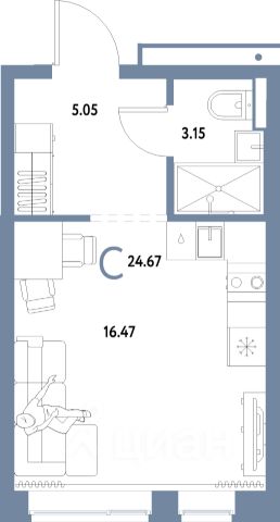 Современная студия с ремонтом "под ключ" — заезжай и живи! Описание: Продается светлая и просторная студия. Здесь каждый метр использован с умом! Главная фишка квартиры — увеличенная .Кухня перенесена на утепленный балкон, освободив полезную площадь для гостиной. Благодаря правильному зонированию пространство стало визуально больше и функциональнее. В квартире выполнен качественный ремонт: Кухонная зона на балконе: Подведена вода к гарнитуру. На полу плитка с подогревом. : Стильные обои, ламинат, ровный крашеный потолок. Санузел: Совмещенный. Чистовая отделка плиткой, установлена надежная чугунная ванна. Теплый пол — комфортно в любое время года. Важный плюс — единый уровень пола по всей квартире (балкон, , коридор, ванная). Это современно, красиво и практично. В квартире остаётся практически всё необходимое для жизни (кроме дивана и телевизора). Вам не придется тратиться на первичный ремонт и обустройство. Инфраструктура: Дом расположен в районе с удобной транспортной развязкой — остановка прямо рядом с домом. Во дворе открытая территория, есть наземный и гостевой . В подъезде работают пассажирский и грузовой лифты. Условия: Пластиковые окна, счетчики воды, домофон, железная дверь, проведен интернет и кабельное ТВ. Бесплатное оформление ипотеки по сниженным ставкам от банков-партнеров. Подаем заявку онлайн в несколько банков сразу. Одобрение в течение 1 рабочего дня. Дополнительно оплачивается комиссия с покупателя. Номер объекта: 4008214
