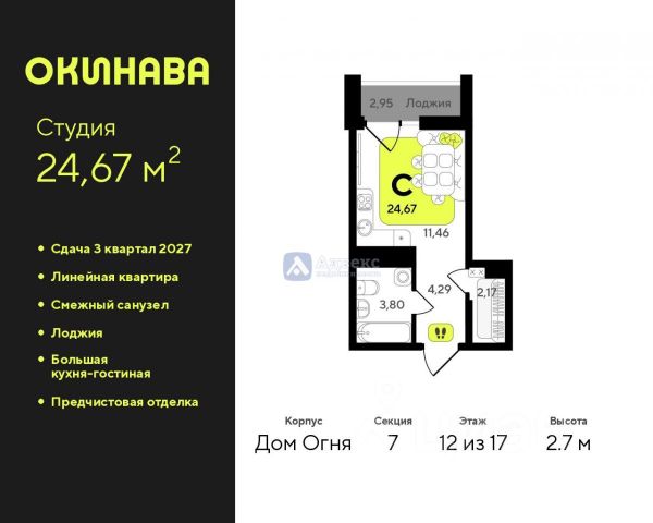 Продаётся 1-комнатная квартира в строящемся доме (ГП-4), срок сдачи: IV-кв. 2027, общей площадью 41.26 кв.м., на 9 этаже. Расположение, транспортная доступность