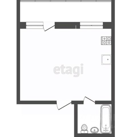 В данной студии функциональная планировка: просторный коридор, совмещенный санузел, кухня-гостиная, где возможно реализовать уютный и компактный дизайн с учетом грамотного и удобного зонирования.