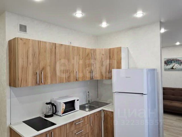 Однокомнатная студия с предчистовой отделкой в ЖК "Республики 205" на 6 этаже. Общая площадь: 19.82 кв.м., площадь гостиной 10.1 кв.м., из которых 5 кв.м. выделено под кухонную зону. Все окна выходят на одну сторону. В квартире один балкон, один совмещенный санузел. Высота потолков 2.6 м.