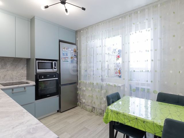 Продается трехкомнатная квартира в новом доме в перспективном районе Ново-Патрушева. Объект полностью готов к заселению и не потребует дополнительных вложений. Выполнен качественный современный ремонт по дизайн-проекту с использованием долговечных материалов. Все предметы интерьера, включая мебель и бытовую технику, остаются новому владельцу. Кухня укомплектована гарнитуром со встроенной техникой: холодильником, духовым шкафом, варочной панелью, вытяжкой и посудомоечной машиной, а также обеденной зоной. В спальне и одной из комнат установлены кондиционеры. Балкон с панорамным остеклением. Жилой комплекс характеризуется благоустроенной территорией и ответственным содержанием common areas управляющей компанией. Микрорайон отличается современной застройкой и развитой инфраструктурой: в шаговой доступности расположены магазины, аптеки, детские сады и школа. Остановка общественного транспорта находится в 100 метрах от дома, что обеспечивает удобную транспортную связность с другими районами города. Квартира подойдет для комфортного проживания семьи благодаря продуманной планировке, тихой локации и виду на новый квартал. Для детального осмотра объекта доступен просмотр в удобное время.
