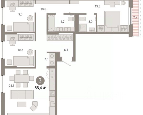 Двухуровневая квартира с кухней-гостиной и тремя спальнями в Октябрьском на Туре. Особенности планировки: балкон, вид во двор, гардеробная, двухуровневая, панорамное остекление, свободная планировка, терраса на крыше. квартиры в нашей базе: ОКТ-10-3-3.8.5. Район Проект расположен на берегу реки, в одном из самых живописных и экологичных районов Тюмени. За последние годы облик района изменился. По соседству с индивидуальной застройкой выросли многоквартирные дома. При проектировании "Октябрьского на Туре" нашей приоритетной задачей стало сохранение природного ландшафта: мы постарались деликатно вписать в него современную архитектуру. Квартал удачно расположен с точки зрения дорожной инфраструктуры. На автомобиле путь до центра города составит 15 минут. Добраться до набережной и главных тюменских достопримечательностей можно и на общественном транспорте. В пешей доступности находится автобусная остановка. Проект По мастер-плану здесь будет восемь домов. Ядро застройки составляют замкнутые кварталы переменной этажности. Их высотность понижается по мере приближения к реке. На углах участка мы разместили башни-доминанты. Одной из достопримечательностей квартала станет парк на Туре — здесь появится зеленая зона протяженностью около 6 километров для пеших и велопрогулок. Смысловая ось квартала — широкая главная улица с высаженными вдоль неё высокими деревьями. Они создают тень и работают как шумо- и пылезащитные экраны. Это место сосредоточения основных пешеходных и транспортных потоков, на сторону которых мы ориентировали большинство коммерческих помещений. Отсюда жители могут свернуть на тихие соседские улицы и попасть на внутриквартальную площадь — ещё одну точку притяжения. #ZwICBe