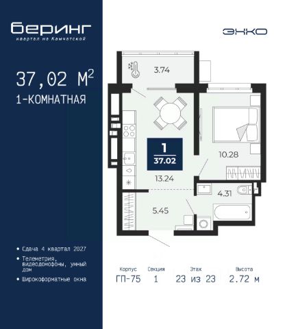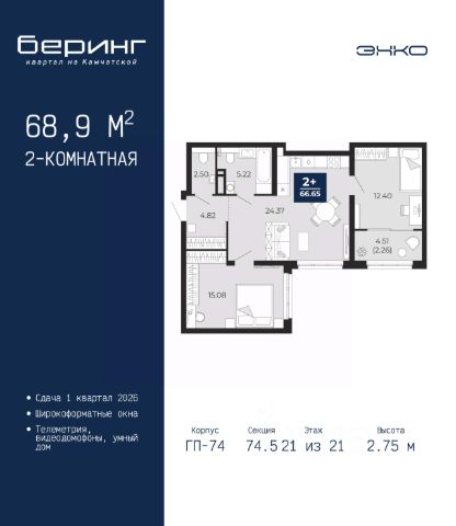 Торопитесь забронировать, пока действует скидка, предложение ограничено! Стоимость квартиры указана со скидкой, ваша экономия составит 500,000 руб. Звоните, мы вам все подробно расскажем. Продается 3-комн. квартира от застройщика в ЖК "Беринг" на 9 этаже. Общая площадь: 84.05 кв.м. Высота потолков 2.75 м. Дом монолитный, многоподъездный, переменной этажности, от 9 до 22 этажей. Квартира находится в 73.6-й секции высотой 9 этажей в корпусе ГП-73. На этаже 5 квартир. В подъезде 1 пассажирский и 1 грузовой лифт. Окончание строительства - 1 квартал 2026 года. Оформление сделки по договору долевого участия. Подобно знаменитому исследователю, мы чувствуем себя первооткрывателями этой локации. Хотим показать новую суть места, сформировать для вас жизненный опыт, которого ещё не было. Беринг — район зелёного цвета. Беринг — район, который откроется вам с другой стороны. Впечатлит новым уровнем комфорта и качеством жизни. Беринг — открытие на карте города. Первый квартал расположен в районе Тура, в границах улиц: Камчатская Западносибирская Энтузиастов. Вокруг уже есть всё для того, чтобы ежедневная рутина была лишь частью жизни и не доставляла дискомфорта. Школы и детские сады, магазины и аптеки, поликлиника, места для семейного отдыха, пеших и велопрогулок, и даже рыбалки. Масштабное озеленение дворов — визитная карточка ЭНКО и ваш оазис спокойствия, чтобы отвлечься от повседневности. Раскидистые деревья, кустарники, травы и цветы — осталось остановиться, вдохнуть и расслабиться, глядя на эту природную красоту. Стилистика подъездов продолжает концепцию Беринга, вдохновлённого Камчаткой: сдержанный, но при этом впечатляющий дизайн соседствует с удобством и функциональностью. #ZME1mU