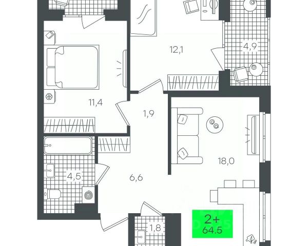 Однокомнатная квартира с предчистовой отделкой в ЖК "Прео" на 12 этаже. Общая площадь: 48.5 кв.м., жилая: 12.25 кв.м., площадь просторной кухни-столовой: 20.2 кв.м. Все окна выходят на одну сторону. В квартире одна лоджия, один совмещенный санузел. Высота потолков 2.7 м.