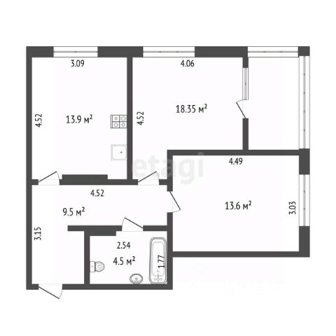 В продаже большая трёхкомнатная (фактически 4+:3 спальни и кухня-гостиная) квартира общей площадью 86,3 м2 не требующая вложений. Заходи и живи