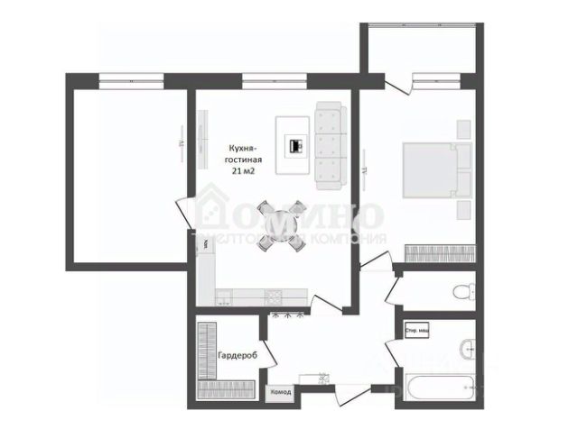 Ключевым преимуществом объекта является большая кухня-гостиная площадью 19,42 м2 м², которая служит идеальным пространством для отдыха и приема гостей. В кухни гостиное есть кладовка1,66 м2