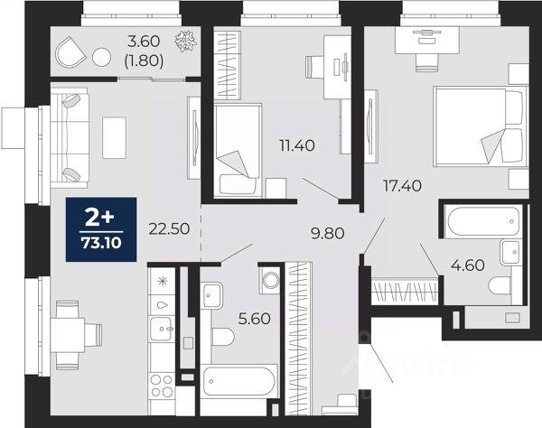 Просторная двухкомнатная квартира с предчистовой отделкой в ЖК "Окинава" на 2 этаже. Общая площадь: 76.71 кв.м., жилая: 27.53 кв.м., площадь просторной кухни-столовой: 28.47 кв.м. Квартира - распашонка, без проходных комнат, окна выходят на paзные стороны дома. В квартире одна лоджия, один совмещенный и один раздельный санузел. Высота потолков 2.7 м.