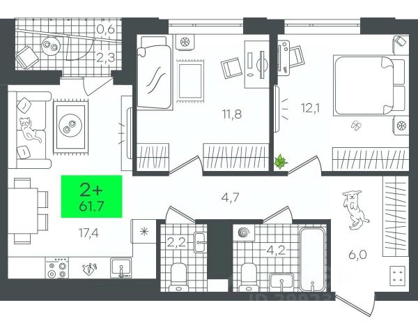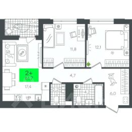 Квартира 2+ с мастер-спальней и террасой на последнем этаже. Выходы на террасу есть из кухни-гостиной и обеих спален. В одной из спален спроектирована отдельная ванная комната. В просторной прихожей можно разместить несколько мест для хранения. В кухне-гостиной предусмотрена ниша под размещение кухонного гарнитура. Терраса расширит возможности для времяпрепровождения дома, здесь можно принимать солнечные ванны, заниматься спортом на свежем воздухе, жарить барбекю и устраивать пикники летом, украшать елку и получать больше витамина D зимой. Гранд Квартал, 2-Д8.2, 15, 2, квартира 156