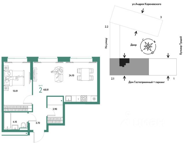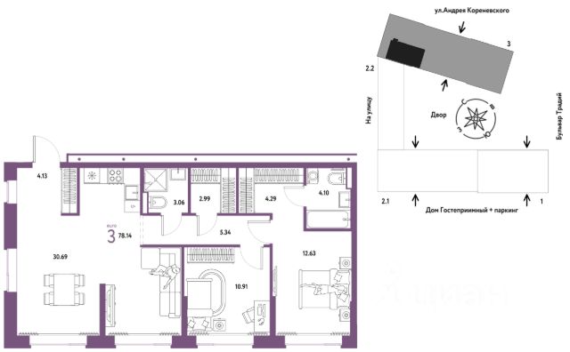 Объявление от застройщика Страна Девелопмент. Покупка квартиры защищена банком. Продается 2комнатная квартира на 13 этаже от застройщика Страна Девелопмент. Площадь квартиры 47,73 кв. м. О ПРОЕКТЕ Микрорайон "Домашний" — это 6 очередей строительства, 24 дома переменной этажности. Каждый дом уникальный. Внутри микрорайона появится огромный пешеходный бульвар — бульвар Традиций. Центром притяжения станут открытые пространства для отдыха жителей и гостей микрорайона, которые легко меняются под сезонные сценарии отдыха: новогодняя елка, ярмарки, кинопоказы и т.д. У каждого дома обустроен приватный двор с зонами для активного и спокойного отдыха. В активной зоне детские разновозрастные площадки с горками, песочницами и качелями, воркаут-зоны. В спокойной — скамейки, мини-амфитеатры, закрытые перголы. Уютной атмосферу сделает обильное озеленение и освещение "домашними" торшерами. ОТДЕЛКА Квартиры сдаются с предчистовой отделкой. Все грязные работы выполнены: произведена разводка электричества и отопления; выполнена стяжка пола; стены выровнены "под маяк". В квартире установлены розетки, выключатели и радиаторы. На входе — надежная стальная дверь. Вам остается только выбрать материалы и начать ремонт Доступна опция "Ремонт от застройщика". Стоимость можно включить в ипотеку. Вы можете заказать один из пяти стилей на выбор: шалфей, хлопковая нить, серый шторм, голубой вереск, белый камень. КУХНЯ С ТЕХНИКОЙ Теперь дополнительно к ремонту можно заказать кухню со встроенной техникой. Эргономику и функциональное наполнение разработали под каждую планировку. ПОЛНАЯ МЕБЛИРОВКА Больше не нужно тратить время даже на подбор, доставку и сборку мебели.Вы можете включить в стоимость квартиры с ремонтом полную меблировку. - Что входит в меблировку? - Кухня с техникой и сантехникой - Диван - Кровать - Шкаф в спальне - Шкаф в прихожей На консультации менеджер подскажет, какие акции действуют, и как получить одобрение по ипотеке с низкой ставкой. Более подробная информация по телефону.
