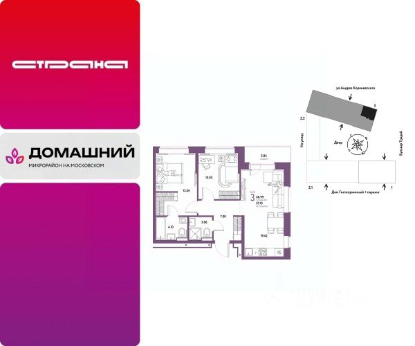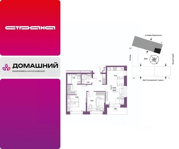 Новая квартира в ЖК "Домашний" напрямую от федеральной группы компаний "Страна Девелопмент". Финансовый партнер — банк "ДОМ.РФ". Продается 3комнатная квартира на 15 этаже от застройщика Страна Девелопмент. Площадь квартиры 51,91 кв. м. ЖК "ДОМАШНИЙ" Жилой комплекс "Домашний" это первый цифровой район в Сибири, где жители заходят в парадные по Face ID, автомобили заезжают в паркинг по сканированию номера, а лифт автоматически спускается на первый этаж при открытии домофона. Даже во дворах — USB-розетки и беседки с подогревом. ПРЕИМУЩЕСТВА -Школа, зеленый сквер и пешеходный бульвар прямо внутри квартала -Закрытые дворы у каждого дома для активного и спокойного отдыха -Охрана, видеонаблюдение 24/7 и доступ к камерам в мобильном приложении -Сквозные парадные с прозрачными входными группами, колясочными и велосипедными -Паркинг с въездом по считыванию номеров, системой контроля выбросов CO2, тележками для покупок и велопарковкой -Торговая галерея на первом этаже дома ОТДЕЛКА Квартиры сдаются с предчистовой отделкой: произведена разводка электричества и отопления, выполнена стяжка пола, стены выровнены "под маяк", установлены розетки, выключатели и радиаторы. ДИЗАЙНЕРСКАЯ ОТДЕЛКА При покупке квартиры в ЖК "Домашний" можно включить стоимость ремонта в ипотеку. Пять вариантов на выбор: Хлопковая нить, Серый шторм, Белый камень, Шалфей, Голубой вереск. СПОСОБЫ ПОКУПКИ Сотрудники "Страна Девелопмент" будут сопровождать вас на каждом этапе сделки, помогут получить одобрение по ипотеке или снизить ежемесячный платеж. - ипотека - материнский капитал -100% оплата наличными