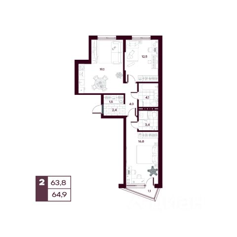 Продается однокомнатная квартира-студия с предчистовой отделкой в ЖК "Мотивы" на 12 этаже. Общая площадь: 23.27 кв.м., площадь гостиной 13.89 кв.м., из которых 5 кв.м. выделено под кухонную зону. Все окна выходят на одну сторону. В квартире один балкон, один совмещенный санузел. Высота потолков 2.7 м. Квартира будет сдаваться с предчистовой отделкой White Box: выровнены и оштукатурены стены, проведено электричество и отопление, установлены радиаторы. Вы также можете приобрести квартиру с ремонтом от застройщика, представленным в трех цветовых решениях Scandi, Wood и Coffee и включающим ламинат, обои под покраску, двери, натяжной потолок и санузел с сантехникой. При желании вы можете заказать отделку под ключ, варианты возможных решений представлены в альбоме фотографий. Дом монолитный, двухподъездный, переменной этажности, от 12 до 14 этажей. Квартира находится во 2-й секции высотой 12 этажей в корпусе ГП-1. На этаже 12 квартир. В подъезде 1 пассажирский и 1 грузовой лифт. Строительство завершено, дом сдан в 4 квартале 2024 года. Оформление сделки по договору купли-продажи. Закрытая от автомобилей территория, безопасный двор и камеры видеонаблюдения - гаранты вашего спокойствия. Квартал будет располагать богатой инфраструктурой: на первых этажах разместятся магазины, пекарни, кофейни, пункты выдачи, аптеки, детские центры, цветочные салоны и многое другое, что сделает жизнь поистине комфортной. Рядом находится парк общей площадью почти 5000 м², в котором располагаются локации для игр и отдыха жителей, здесь можно совершить утреннюю пробежку или прогуляться после рабочего дня. В парке есть зона воркаута с тренажерами для взрослых, игровые комплексы с горками и канатный комплекс для детей разных возрастов, качели и лавочки для отдыха, площадки для командных видов спорта и для панна-футбола. В ЖК "Мотивы" всё продумано до мелочей: светлые холлы входных групп, оформленные в едином стиле, просторные колясочные, лапомойки для питомцев. На территории комплекса находятся 2 8-ми этажных паркинга и более 1000 м/м на открытой парковке. Жилой комплекс находится в одном из экологически благоприятных районов Тюмени, недалеко от Плехановского бора. При этом до центра города можно добраться за 15 минут, а до международного аэропорта Рощино за 13 минут. Окончание строительства: ГП 1, 2, 3, 4 сдача до конца 2024 года, ГП 6, 7, 8 сдача 2 квартал 2026 года. #2wEOOf