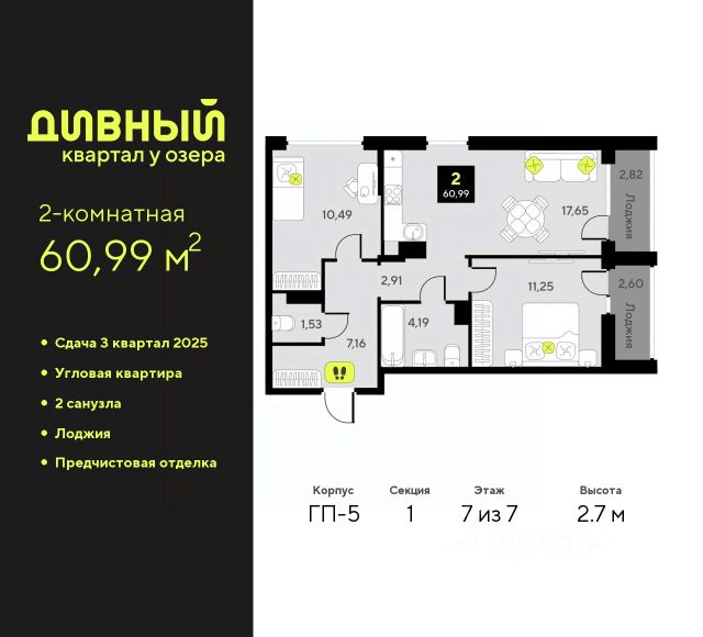 Продается однокомнатная квартира от застройщика с предчистовой отделкой в ЖК "Дивный квартал у озера" на 7 этаже. Общая площадь: 38.82 кв.м., жилая: 14.48 кв.м., площадь просторной кухни-столовой: 11.41 кв.м. Все окна выходят на одну сторону. В квартире одна лоджия, один совмещенный санузел. Высота потолков 2.7 м. Квартира будет сдаваться с предчистовой отделкой White Box: выровнены и оштукатурены стены, проведено электричество и отопление, установлены радиаторы. Вы также можете приобрести квартиру с ремонтом от застройщика, представленным в трех цветовых решениях Scandi, Wood и Coffee и включающим: ламинат, обои под покраску, двери, натяжной потолок, санузел с сантехникой. При желании вы можете заказать отделку под ключ, варианты возможных решений представлены в альбоме фотографий. Дом монолитный, черырехподъездный, переменной этажности, от 7 до 9 этажей. Квартира находится в 1-й секции высотой 7 этажей в корпусе ГП-5. На этаже 9 квартир. В подъезде 1 грузовой лифт. Окончание строительства - 4 квартал 2025 года. Оформление сделки по договору долевого участия. "Дивный квартал у озера" современный жилой квартал, удобно расположенный в 10-ти минутах от центра Тюмени, в уютном районе рядом с зеленым массивом и озером Алебашево. Комплекс находится между улицами Мельникайте и Алебашевская, что обеспечивает его хорошую транспортную доступность до центра на автомобиле всего 10 минут. Рядом с комплексом расположен Лесопарк имени Гагарина, экзотический Парк дружбы между Россией и Республикой Корея. "Дивный квартал у озера" объединяет архитектуру современной городской застройки и природную эстетику. Уютные дворы жилого комплекса будут не только безопасными, но и тихими. Закрытая территория надёжно защищена от шума и посторонних глаз. Здесь будут места для отдыха, детские площадки, зоны для выгула собак. В холлах первого этажа расположены мягкая зона ожидания, общественные санузлы и просторная колясочная. Квартал будет располагать богатой инфраструктурой: на первых этажах домов разместятся магазины, пекарни, кофейни, пункты выдачи, аптеки, детские центры, цветочные салоны и многое другое, что сделает жизнь поистине комфортной. В комплексе есть теплый подземный паркинг и кладовые. #2wavdd