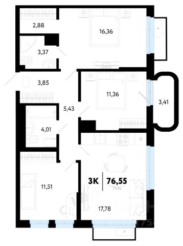 Продаётся 2-комнатная квартира в строящемся доме (ГП 2 (Сергея Корепанова, 34)), срок сдачи: IV-кв. 2027, общей площадью 53.69 кв.м., на 17 этаже. Новый жилой комплекс "Скандиа. Квартал у Леса" от Специализированного застройщика "СКАНДИА У ЛЕСА" расположен в г. Тюмень на ул. Бориса Прудаева.