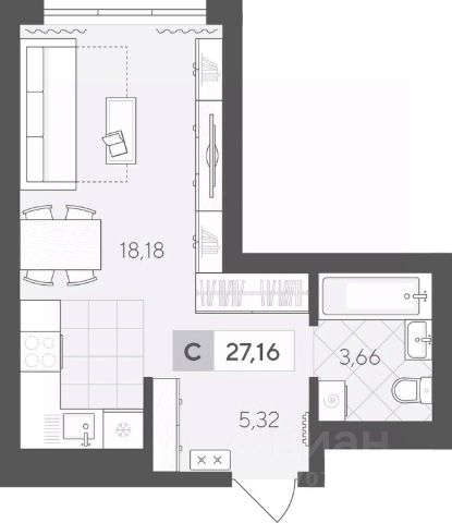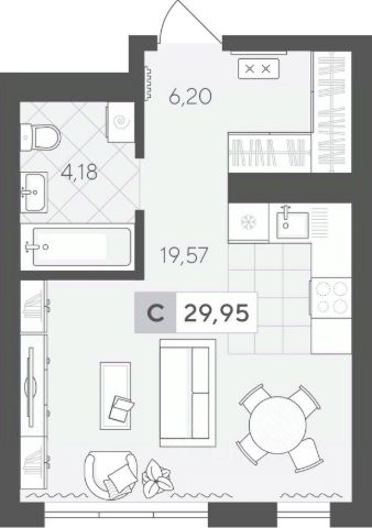 Однокомнатная квартира с предчистовой отделкой в ЖК "Прео" на 17 этаже. Общая площадь: 41.23 кв.м., жилая: 17.67 кв.м., площадь просторной кухни-столовой: 12.3 кв.м. Все окна выходят на одну сторону. В квартире один балкон, один совмещенный санузел. Высота потолков 2.7 м.