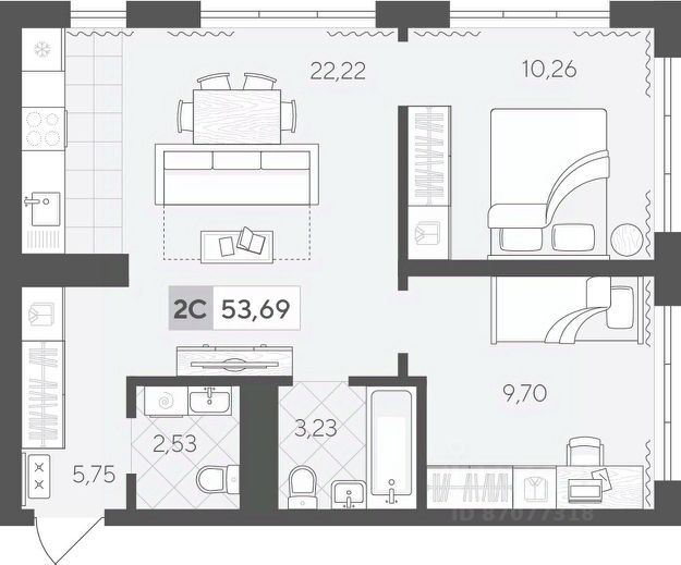 Дом монолитный, трехподъездный, переменной этажности, от 14 до 22 этажей. Квартира находится во 2-й секции высотой 22 этажа в корпусе 208. На этаже 10 квартир. В подъезде 1 пассажирский и 1 грузовой лифт. Окончание строительства - 4 квартал 2025 года. Оформление сделки по договору долевого участия.
