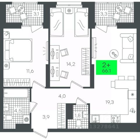 Продаётся 2-комнатная квартира в строящемся доме (В5.3 (Малкова, 19)), срок сдачи: III-кв. 2026, общей площадью 66.14 кв.м., на 17 этаже. Компания 4D приступила к строительству нового жилого комплекса "Гранд квартал". Новый ЖК находится в зеленой зоне Калининского района, южнее микрорайона Тюменская слобода.