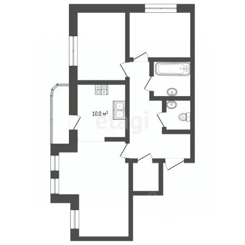 Функциональная планировка квартиры : две изолированные комнаты , с выходом из одной на балкон с панорамным окнами , просторная кухня (10.36м2), изолированный санузел и прихожая.