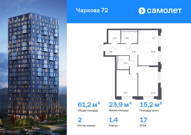 Строим кварталы для жизни с заботой о будущем. Предлагается 1-комнатная квартира комфорт-класса 32,3 кв.м в корпусе 1.2 на 17 этаже, в ЖК "Чаркова 72" Квартира с чистовой отделкой. Доступность дополнительных опций уточняйте у застройщика. Приобрести квартиру возможно по специальным акциям от застройщика, с текущими условиями акций можно ознакомиться в блоке "Акций". Цена динамическая и может отличаться, уточняйте актуальность у застройщика. Идеальное сочетание городского комфорта и размеренной жизни — квартал "Чаркова 72" на северо-востоке города. В дизайне 17-24-этажных домов с панорамными балконами нашли отражение нотки сибирской природы. От "Чаркова 72" удобно добираться до центра города — всего 17 минут пути. А в 2 минутах от дома находится Тобольский тракт. Для семейного отдыха отлично подойдет парк Гагарина — он находится в 7 минутах от квартала. В закрытых дворах тихо и уютно — все авто остались на одном из 4 многоуровневых паркингов, которые находятся за территорией квартала. Можно спокойно гулять по бульвару и заниматься йогой на спортивной площадке. На первых этажах домов — кафе и магазины. Рядом с проектом — детские сады и школы, городская поликлиника и МФЦ. Во всех квартирах есть выводы под кондиционеры, на подземных этажах — индивидуальные кладовые, на первых — места для хранения велосипедов и колясок. В квартирах можно выбрать варианты отделки: чистовая, черновая и улучшенная из материалов повышенного класса.