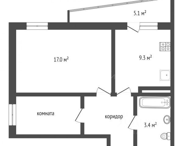 Формат 1 (застройщик относит к двухкомнатным за счёт кухни-гостиной) — один из самых востребованных и ликвидных вариантов на рынке.