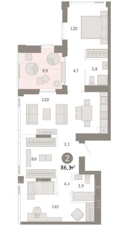 Двухкомнатная квартира с предчистовой отделкой в ЖК "Зарека" на 25 этаже. Общая площадь: 86.32 кв.м. Высота потолков 2.7 м. Квартира находится в корпусе 5-1. Дом монолитный, одноподъездный, высотой 25 этажей. На этаже 12 квартир. В подъезде 2 пассажирских и 1 грузовой лифт. Окончание строительства - 1 квартал 2027 года. Оформление сделки по договору долевого участия. Квартира с кухней-гостиной и двумя спальнями в жилом районе "Зарека". Особенности планировки: второй санузел, гардеробная, лоджия, окно в коридоре, разнесённые спальни, свободная планировка. квартиры в нашей базе: ЗРК05.1-Ж1.25.3. Проект На планировочную структуру "Зареки" повлияла близость к автомобильному мосту Челюскинцев. Мы расположили жилые здания так, чтобы они постепенно удалялись от проезжей части. Приём напоминает лесенку: чем сильнее мост возвышается над участком застройки, тем дальше по отношению к нему стоят дома. Этот ступенчатый сдвиг позволил нам сформировать буфер между кварталами и оживлённой магистралью. Мы намерены высадить здесь высокие деревья и создать дополнительную защиту от дорожных шума и пыли. В границах нашего участка мы намерены разместить школу и два встроенных детских сада на 135 и 150 мест. Общественные пространства С севера на юг территорию будет пронизывать пешеходный бульвар. Мы мыслим это общественное пространство как главный центр притяжения. На нём будут сосредоточены основные детские игровые и спортивные зоны, места для встреч и спокойного отдыха. Он также сыграет роль мостика, ведущего к другим нашим проектам — "Европейскому кварталу" и "Дому у озера". Одна из базовых идей мастер-плана касается береговой линии. Сегодня озеленение этой территории носит стихииныи характер, а прямому доступу к Туре препятствует дамба. Мы хотим благоустроить пространства у воды и открыть их для людей. Архитекторы спроектировали систему многоярусных троп и спусков к реке, смотровые площадки и места для активного отдыха и пикников. #zSVoTs