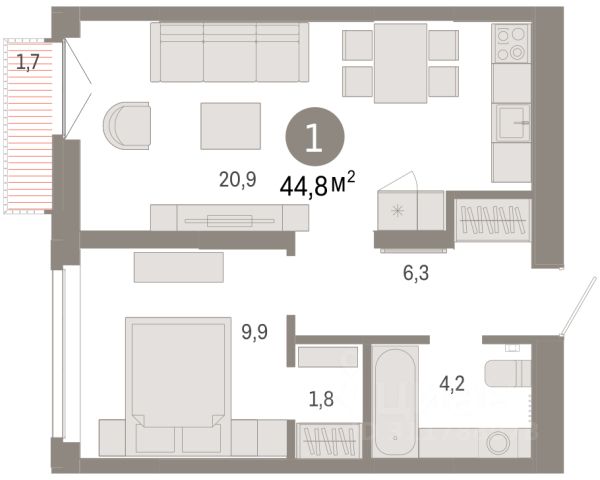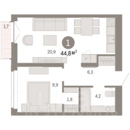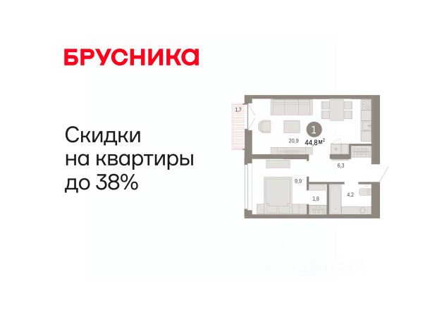 Квартира в счёт первоначального взноса по программе обмена. Информация по телефону, мы вам все подробно расскажем! Продается 1-комн. квартира с предчистовой отделкой в ЖК "Республики 205" на 9 этаже. Общая площадь: 44.1 кв.м., жилая: 8.9 кв.м., площадь просторной кухни-гостиной: 16 кв.м. Все окна выходят на одну сторону. В квартире один балкон, один совмещенный санузел. Высота потолков 2.7 м. Купить квартиру можно с помощью программ покупки от застройщика Брусника: - ипотека по эксклюзивной ставке с помощью в получении положительного кредитного решения через сервис ипотечный брокер; - квартиры в рассрочку без процентов от застройщика Брусника; - обмен квартиры на новую. Получить одобрение ипотеки или рассрочку, а также осуществить обмен квартир можно онлайн. Дом монолитный, многоподъездный, переменной этажности, от 7 до 16 этажей. Квартира находится в 1-й секции высотой 9 этажей в корпусе 2. На этаже 10 квартир. В подъезде 1 грузовой лифт. Начало строительства - 1 квартал 2024 года. Окончание строительства - 1 квартал 2026 года. Оформление сделки по договору долевого участия. Район Проект расположен в границах улиц Пермякова, Энергетиков, Воровского и Республики. До центра города — 10 минут на машине. Рядом — автомобильная развязка на пересечении улиц Пермякова и Республики. В шаговой доступности есть школы, детские сады, поликлиники, крупный торговый центр, автовокзал и несколько скверов. Проект "Республики 205" — это проект комплексного развития территории, уникальный по своему наполнению. Переосмысляя бывшую территорию завода медицинского оборудования, мы создадим новое место силы — микрорайон, насыщенный деловой, развлекательной, рекреационной, игровой, образовательной и медицинской инфраструктурой. До каждого полезного сервиса здесь можно будет дойти за 15 минут. Локальными центрами "Республики 205" будут общественные пространства — скверы, парки, бульвары и площади. В границах нашего участка мы намерены разместить школу, рассчитанную на 1550 учеников, два детских сада на 300 мест и встроенный детский сад на 100 мест. В одном из цехов бывшего завода расположится креативный кластер "Кузница". Он станет площадкой для нескольких институций — галереи, лектория, книжного магазина-библиотеки, кинобара и точек креативного pop-up-ритейла. Пешеходные бульвары внутри района соединят между собой улицу ресторанов, детские и спортивные площадки, событийную площадь и летний кинотеатр. Идентификатор квартиры по базе застройщика: РСП-02-1-1. #zSsCfO