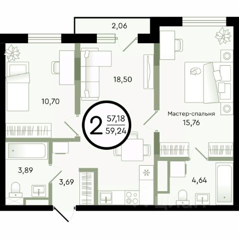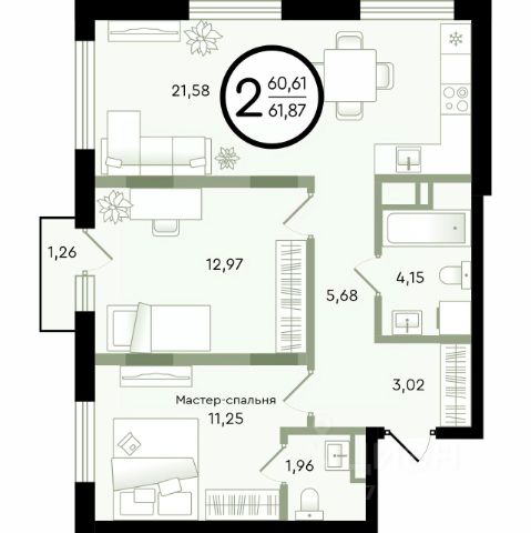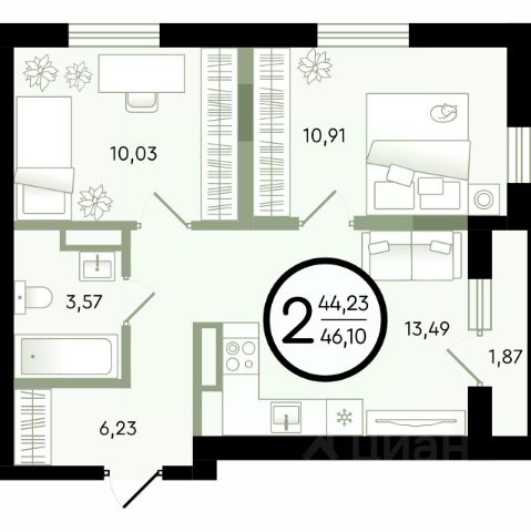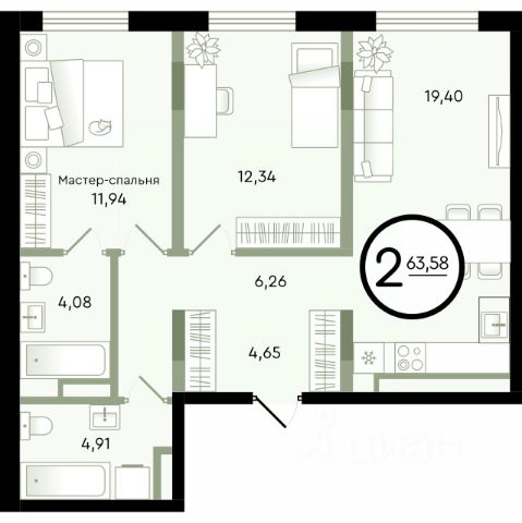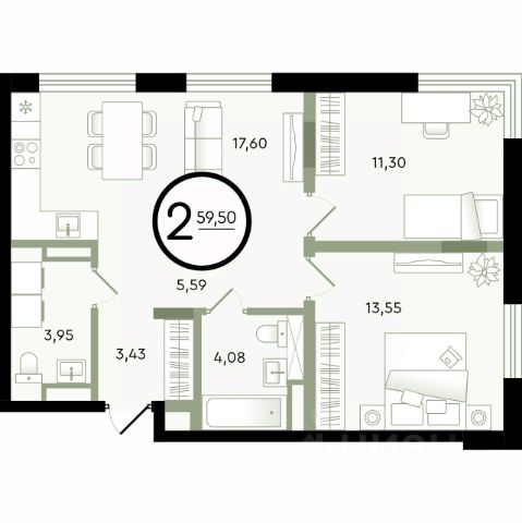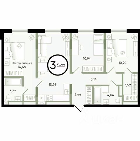 Продаётся 3-комнатная квартира в строящемся доме (ГП-14 (Александра Невского, 9)), срок сдачи: I-кв. 2029, общей площадью 75.44 кв.м., на 4 этаже. Новый малоэтажный жилой комплекс "Зеленые аллеи" от Девелоперской компании "Навигатор" расположен в Калининском районе Тюмени на ул. Бориса Быстрых.