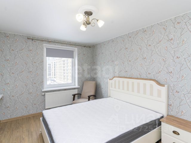 Квартира с кухней-гостиной и двумя спальнями в Доме у озера. Особенности планировки: вид во двор, гардеробная, лоджия, мастер-спальня, предчистовая отделка, разнесённые спальни.