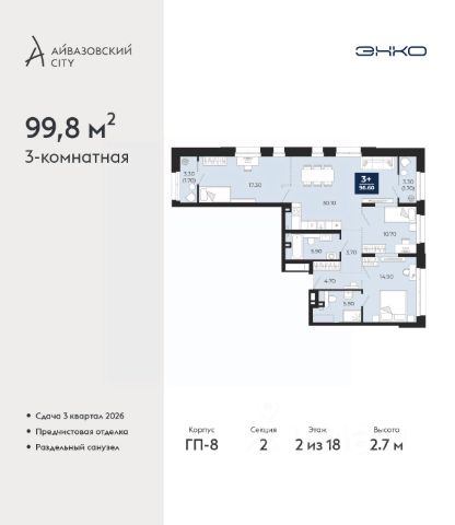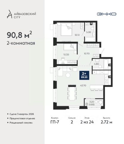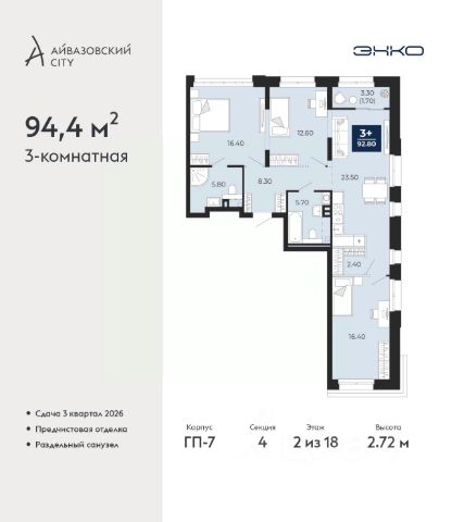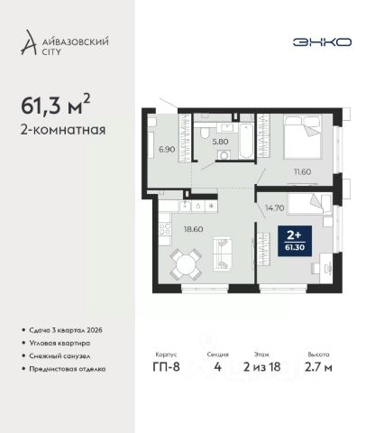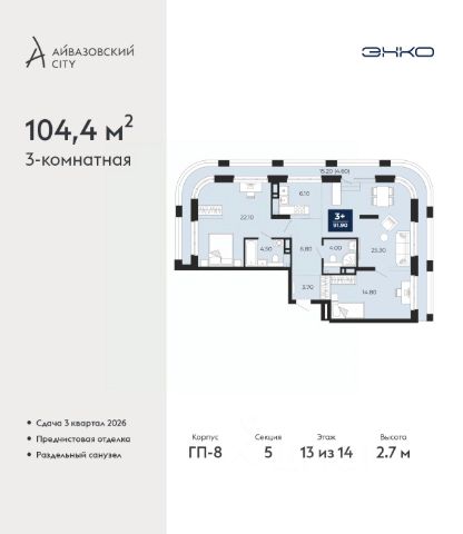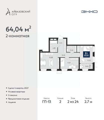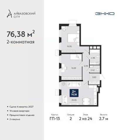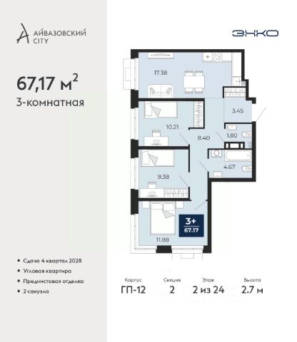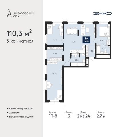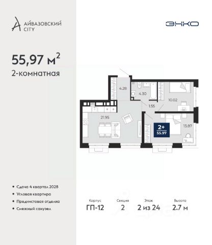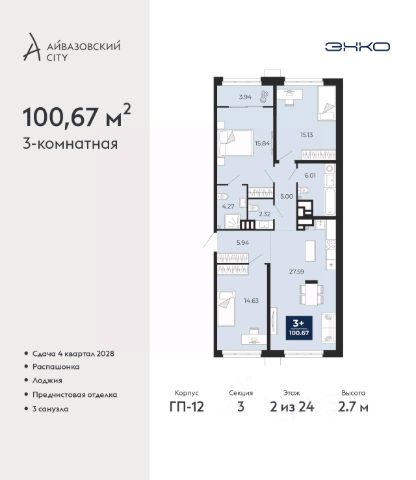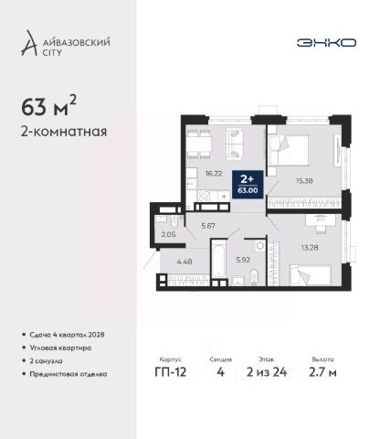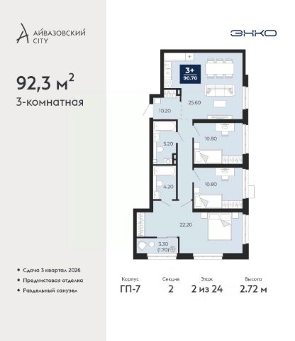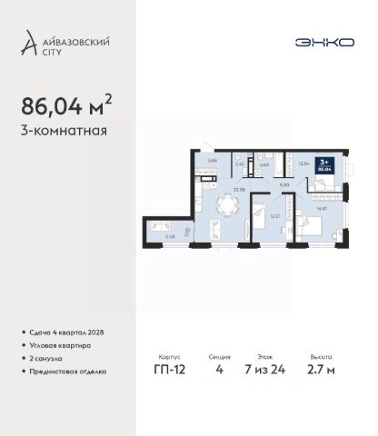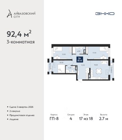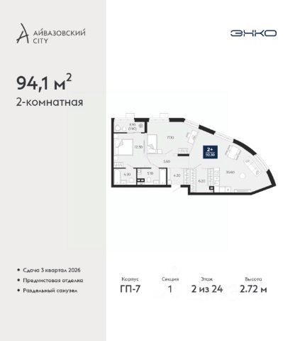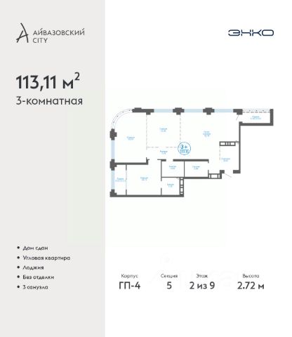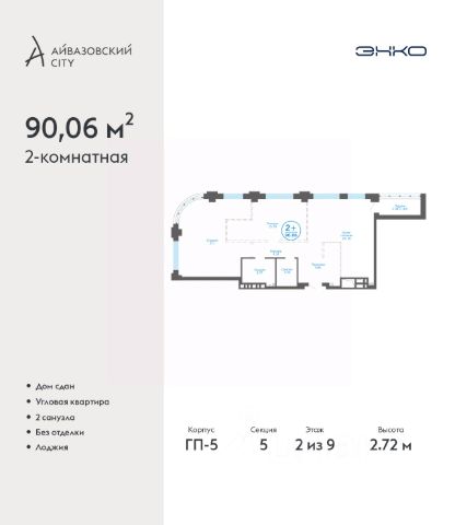 Успейте оформить бронирование, пока действует скидка, предложение ограничено! Стоимость квартиры указана со скидкой, ваша экономия составит 1,220,000 руб. Информация по телефону, наши менеджеры вам все расскажут. Продается 2-комн. квартира в ЖК "Айвазовский" на 2 этаже. Квартира без отделки, новый владелец может сделать ремонт по своему дизайн-проекту. Общая площадь: 90.06 кв.м., жилая: 42.88 кв.м., площадь просторной кухни-столовой: 23.18 кв.м. Угловая квартира, очень светлая, естественная вентиляция при открытии окон. В квартире одна лоджия, два совмещенных санузла. Высота потолков 2.72 м. Дом монолитный, многоподъездный, переменной этажности, от 5 до 21 этажей. Квартира находится в 5-й секции высотой 9 этажей в корпусе ГП-5. На этаже 5 квартир. В подъезде 1 пассажирский и 1 грузовой лифт. На сегодняшний день строительство завершено, дом сдан в 4 квартале 2023 года. Оформление сделки по договору купли-продажи. Новый жилой район располагается в живописном месте на берегу Туры в центральной части города. Принципиально новое пространство для жизни в центре современного города для тех, чьи мечты сбываются, кто нацелен на постоянный рост, перемены к лучшему для себя и своих близких. Каждая деталь ЖК "Айвазовский" вдохновляет и заряжает на новые свершения: авторская архитектура, сбалансированная продуманная инфраструктура, дизайнерские дворы со спортивными и детскими площадками, парковые зоны с фонтанами, водный канал, украшающий центральный прогулочный маршрут района и многое другое. В 2019 года проект стал лауреатом престижной премии Urban Awards 2019 в номинации "Лучший строящийся региональный жилой комплекс бизнес-класса". Главная особенность Айвазовский - соседство разных архитектурных школ в рамках одного дома. Изысканная классика, выразительная эклектика и оригинальный модерн - жить в одном из таких домов настоящий повод для гордости. Айвазовский это идеальное сочетание комфорта, технологий и развитой инфраструктуры. Вход в подъезд возможен с улицы и со двора. Отправляясь на работу или за покупками, жители могут выйти с внешней стороны дома, а для прогулки с ребенком со стороны двора. Экологически чистые материалы и энергосберегающие технологии, качественное освещение общественных зон, видеонаблюдение по всей территории жилого района (в том числе в подъездах, лифтах и в подземном паркинге), закрытые дворы с доступом только для жителей Айвазовский. Часть домов в Айвазовский будут оснащены подземным паркингом. Востребованный в нашем климатическом поясе формат хранения автомобилей защитит собственность владельца в любое время года. Аккредитация в банках: ПАО Банк "ВТБ", "Сбербанк России", ОАО "Альфа-Банк", ПАО "Газпромбанк", ПАО АКБ "Абсолют Банк" и других. #lCWaaZ Квартира в доме бизнес класса.