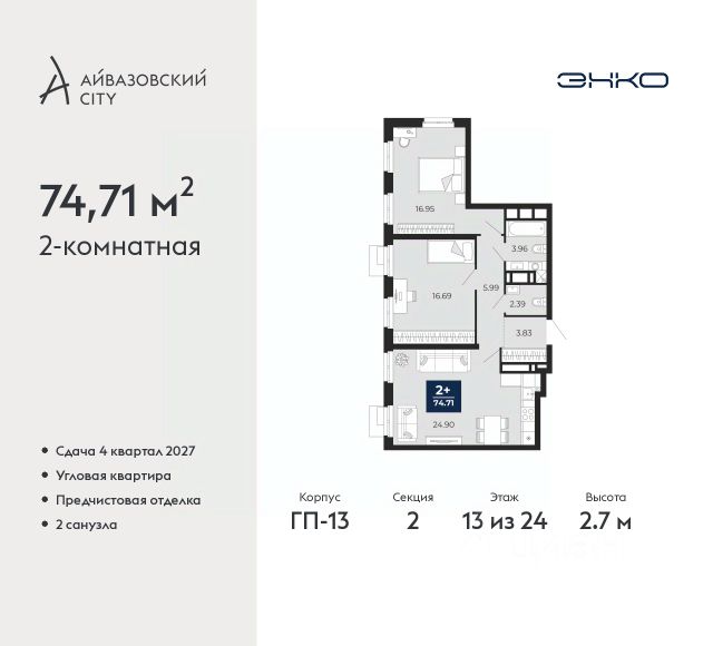 Просторная двухкомнатная квартира с предчистовой отделкой в ЖК "Айвазовский City" на 2 этаже. Общая площадь: 65.88 кв.м., жилая: 24.19 кв.м., площадь просторной кухни-столовой: 21.46 кв.м. Угловая квартира, идеально подойдет любителям тишины и панорамных видов. В квартире один совмещенный и один раздельный санузел. Высота потолков 2.7 м. Дом монолитный, многоподъездный, высотой 24 этажа. Квартира находится в 3-й секции в корпусе ГП-12. На этаже 6 квартир. В подъезде 1 пассажирский и 1 грузовой лифт. Окончание строительства - 4 квартал 2028 года. Оформление сделки по договору долевого участия. Новый жилой район располагается в живописном месте на берегу Туры в центральной части города. Принципиально новое пространство для жизни в центре современного города для тех, чьи мечты сбываются, кто нацелен на постоянный рост, перемены к лучшему для себя и своих близких. Каждая деталь Айвазовский City вдохновляет и заряжает на новые свершения: авторская архитектура, сбалансированная продуманная инфраструктура, дизайнерские дворы со спортивными и детскими площадками, парковые зоны с фонтанами, водный канал, украшающий центральный прогулочный маршрут района и многое другое. В 2019 года проект стал лауреатом престижной премии Urban Awards 2019 в номинации "Лучший строящийся региональный жилой комплекс бизнес-класса". Главная особенность Айвазовский City - соседство разных архитектурных школ в рамках одного дома. Изысканная классика, выразительная эклектика и оригинальный модерн - жить в одном из таких домов настоящий повод для гордости. Айвазовский City это идеальное сочетание комфорта, технологий и развитой инфраструктуры. Вход в подъезд возможен с улицы и со двора. Отправляясь на работу или за покупками, жители могут выйти с внешней стороны дома, а для прогулки с ребенком со стороны двора. Экологически чистые материалы и энергосберегающие технологии, качественное освещение общественных зон, видеонаблюдение по всей территории жилого района (в том числе в подъездах, лифтах и в подземном паркинге), закрытые дворы с доступом только для жителей Айвазовский City. Часть домов в Айвазовский City будут оснащены подземным паркингом. Востребованный в нашем климатическом поясе формат хранения автомобилей защитит собственность владельца в любое время года. Аккредитация в банках: "Сбербанк России", ОАО "Альфа-Банк", ПАО "Газпромбанк", ПАО Банк "ВТБ", ПАО Банк "ФК Открытие" и других. #z68Afb Купить квартиру в новостройке бизнес класса в Тюменской области.