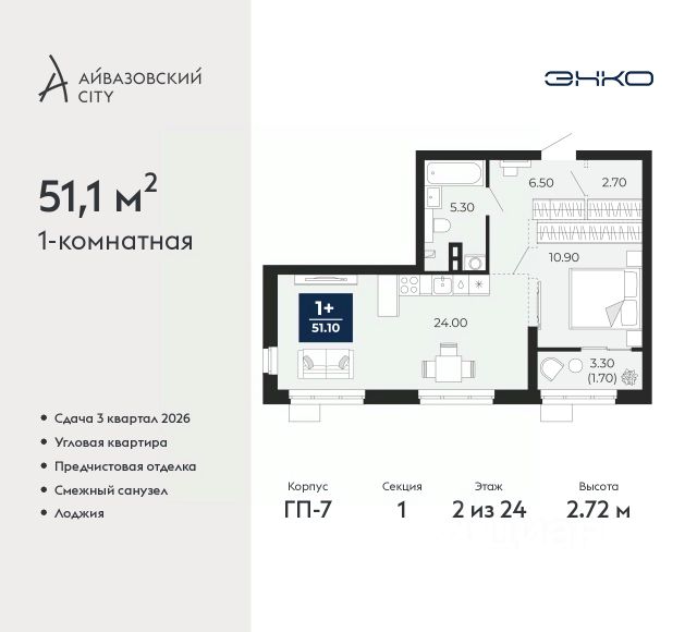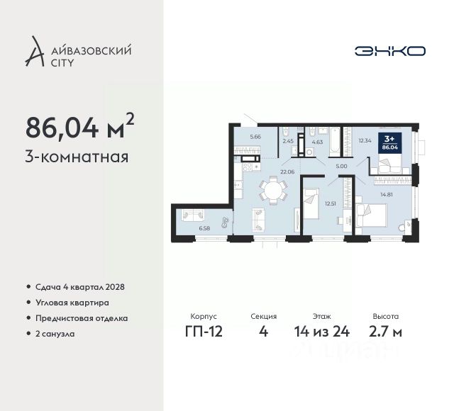 Просторная двухкомнатная квартира с предчистовой отделкой в ЖК "Айвазовский City" на 2 этаже. Общая площадь: 65.88 кв.м., жилая: 24.19 кв.м., площадь просторной кухни-столовой: 21.46 кв.м. Угловая квартира, идеально подойдет любителям тишины и панорамных видов. В квартире один совмещенный и один раздельный санузел. Высота потолков 2.7 м. Дом монолитный, многоподъездный, высотой 24 этажа. Квартира находится в 3-й секции в корпусе ГП-12. На этаже 6 квартир. В подъезде 1 пассажирский и 1 грузовой лифт. Окончание строительства - 4 квартал 2028 года. Оформление сделки по договору долевого участия. Новый жилой район располагается в живописном месте на берегу Туры в центральной части города. Принципиально новое пространство для жизни в центре современного города для тех, чьи мечты сбываются, кто нацелен на постоянный рост, перемены к лучшему для себя и своих близких. Каждая деталь Айвазовский City вдохновляет и заряжает на новые свершения: авторская архитектура, сбалансированная продуманная инфраструктура, дизайнерские дворы со спортивными и детскими площадками, парковые зоны с фонтанами, водный канал, украшающий центральный прогулочный маршрут района и многое другое. В 2019 года проект стал лауреатом престижной премии Urban Awards 2019 в номинации "Лучший строящийся региональный жилой комплекс бизнес-класса". Главная особенность Айвазовский City - соседство разных архитектурных школ в рамках одного дома. Изысканная классика, выразительная эклектика и оригинальный модерн - жить в одном из таких домов настоящий повод для гордости. Айвазовский City это идеальное сочетание комфорта, технологий и развитой инфраструктуры. Вход в подъезд возможен с улицы и со двора. Отправляясь на работу или за покупками, жители могут выйти с внешней стороны дома, а для прогулки с ребенком со стороны двора. Экологически чистые материалы и энергосберегающие технологии, качественное освещение общественных зон, видеонаблюдение по всей территории жилого района (в том числе в подъездах, лифтах и в подземном паркинге), закрытые дворы с доступом только для жителей Айвазовский City. Часть домов в Айвазовский City будут оснащены подземным паркингом. Востребованный в нашем климатическом поясе формат хранения автомобилей защитит собственность владельца в любое время года. Аккредитация в банках: "Сбербанк России", ОАО "Альфа-Банк", ПАО "Газпромбанк", ПАО Банк "ВТБ", ПАО Банк "ФК Открытие" и других. #z68Afb Квартира в новостройке бизнес-класса в Тюмени.