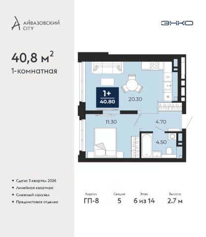 Спешите оформить бронирование по акционной цене! Предложение ограничено! Стоимость квартиры указана со скидкой, ваша экономия составит 319,903 RUB. Информация по телефону, наши менеджеры вам все расскажут! Просторная однокомнатная квартира с предчистовой отделкой в ЖК "Мириады" на 11 этаже. Общая площадь: 40.7 кв.м., жилая: 11.4 кв.м., площадь просторной кухни-столовой: 16.5 кв.м. Все окна выходят на одну сторону. В квартире один балкон, один совмещенный санузел. Высота потолков 2.7 м. Дом монолитный, двухподъездный, переменной этажности, от 14 до 18 этажей. Квартира находится в 1-й секции высотой 18 этажей в корпусе ГП-72.104. На этаже 6 квартир. В подъезде 1 пассажирский и 1 грузовой лифт. В настоящее время строительство завершено, дом сдан в 4 квартале 2025 года. Оформление сделки по договору купли-продажи. Вселенная бесконечных историй. Ранее невиданный Тюмени масштаб: территория 240 гектаров и 1 650 000 м² застройки. Мириады это город масштабных перемен и больших возможностей. Город зеленых рощ и зеркальных озер. Город для работы, учебы и развлечений. Город для детей и их родителей. Город для всех и каждого. Проект расположен в районе Мыс рядом с ТРЦ "Тюмень Сити Молл" в границах улицы Тимофея Чаркова, Тобольского тракта и объездной дороги. Срок полного освоения территории - до 2034 года. #zmTegl Квартиры в ЖК с большой кухней-гостиной в Тюменской области.