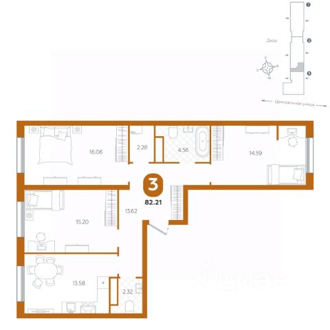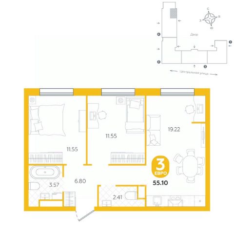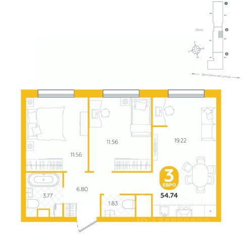 Квартира находится в ЖК "Счастье". Это современный малоэтажный жилой комплекс в окружении березовой рощи. До центра города 10 минут на автомобиле. В 5 минутах езды —роща Декабристов, памятник природы регионального значения