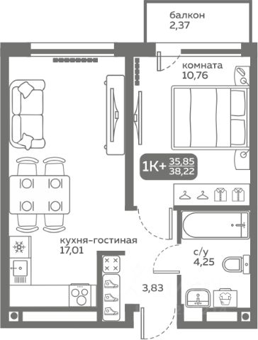 Все зоны оптимально освещены и имеют стандартные размеры для размещения мебели и сантехники. Кухня подойдет не только для приготовления пищи, но и для приема гостей.