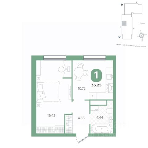 и спальное место, что позволяет эффективно использовать пространство. В прихожей оборудована ниша под шкаф-купе, в санузле предусмотрено место для стиральной машины.Дополнительное преимущество — есть балкон