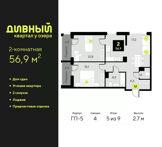 Квартира в рассрочку без процентов от застройщика. Эксклюзивные ипотечные условия. Дом будет сдан в 4 квартале 2025 года. Информация по телефону, мы вам все подробно расскажем. Просторная двухкомнатная квартира с предчистовой отделкой в ЖК "Республики 205" на 6 этаже. Общая площадь: 69.69 кв.м., жилая: 21.4 кв.м., площадь просторной кухни-гостиной: 21 кв.м. Квартира угловая, очень светлая, естественная вентиляция при открытии окон. В квартире один балкон, один совмещенный и один раздельный санузел. Терраса площадью 8.2 кв.м. представляет собой роскошную зону отдыха, где вы на свой вкус можете создать атмосферу комфорта и уюта. Высота потолков 2.6 м. Купить квартиру можно с помощью программ покупки от застройщика Брусника: - ипотека по эксклюзивной ставке с помощью в получении положительного кредитного решения через сервис ипотечный брокер; - квартиры в рассрочку без процентов от застройщика Брусника; - обмен квартиры на новую. Получить одобрение ипотеки или рассрочку, а также осуществить обмен квартир можно онлайн. Дом монолитный, многоподъездный, переменной этажности, от 9 до 17 этажей. Квартира находится в 1-й секции высотой 17 этажей в корпусе 1. На этаже 7 квартир. В подъезде 1 пассажирский и 1 грузовой лифт. Начало строительства - 2 квартал 2023 года. На сегодняшний день строительство завершено, дом сдан в 4 квартале 2025 года. Оформление сделки по договору купли-продажи. Район Проект расположен в границах улиц Пермякова, Энергетиков, Воровского и Республики. До центра города — 10 минут на машине. Рядом — автомобильная развязка на пересечении улиц Пермякова и Республики. В шаговой доступности есть школы, детские сады, поликлиники, крупный торговый центр, автовокзал и несколько скверов. Проект "Республики 205" — это проект комплексного развития территории, уникальный по своему наполнению. Переосмысляя бывшую территорию завода медицинского оборудования, мы создадим новое место силы — микрорайон, насыщенный деловой, развлекательной, рекреационной, игровой, образовательной и медицинской инфраструктурой. До каждого полезного сервиса здесь можно будет дойти за 15 минут. Локальными центрами "Республики 205" будут общественные пространства — скверы, парки, бульвары и площади. В границах нашего участка мы намерены разместить школу, рассчитанную на 1550 учеников, два детских сада на 300 мест и встроенный детский сад на 100 мест. В одном из цехов бывшего завода расположится креативный кластер "Кузница". Он станет площадкой для нескольких институций — галереи, лектория, книжного магазина-библиотеки, кинобара и точек креативного pop-up-ритейла. Пешеходные бульвары внутри района соединят между собой улицу ресторанов, детские и спортивные площадки, событийную площадь и летний кинотеатр. Идентификатор квартиры по базе застройщика: МЕД01-01-1-1. #z20C62 Продается квартира в сданном доме в Тюменской области.
