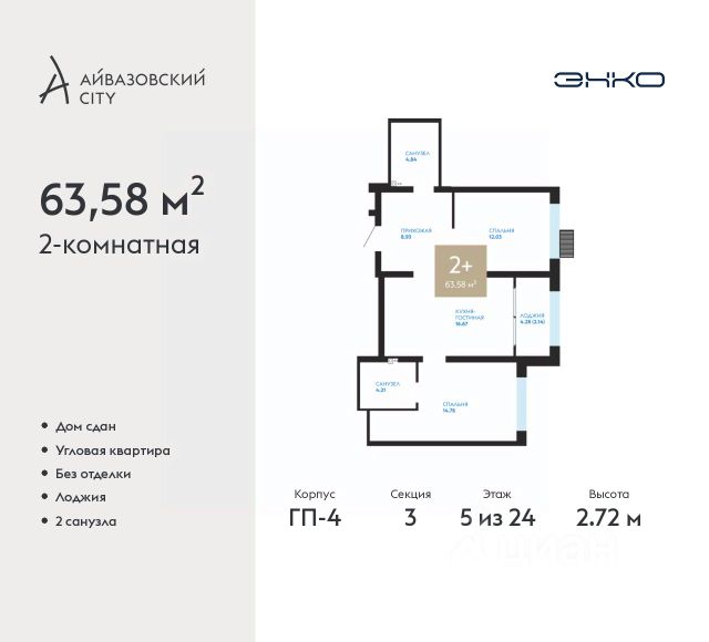 Просторная 2-комн. квартира в ЖК "Айвазовский City" на 2 этаже. Квартира без отделки, после оформления собственности можно делать ремонт. Общая площадь: 90.06 кв.м., жилая: 42.88 кв.м., площадь просторной кухни-столовой: 23.18 кв.м. Угловая квартира, окна oбecпeчивaют paвнoмepнoe ocвeщeниe в тeчeниe дня. В квартире одна лоджия, два совмещенных санузла. Высота потолков 2.72 м. Дом монолитный, многоподъездный, переменной этажности, от 9 до 21 этажей. Квартира находится в 5-й секции высотой 9 этажей в корпусе ГП-5. На этаже 5 квартир. В подъезде 1 пассажирский и 1 грузовой лифт. Строительство завершено, дом сдан в 4 квартале 2023 года. Оформление сделки по договору купли-продажи. Новый жилой район располагается в живописном месте на берегу Туры в центральной части города. Принципиально новое пространство для жизни в центре современного города для тех, чьи мечты сбываются, кто нацелен на постоянный рост, перемены к лучшему для себя и своих близких. Каждая деталь Айвазовский City вдохновляет и заряжает на новые свершения: авторская архитектура, сбалансированная продуманная инфраструктура, дизайнерские дворы со спортивными и детскими площадками, парковые зоны с фонтанами, водный канал, украшающий центральный прогулочный маршрут района и многое другое. В 2019 года проект стал лауреатом престижной премии Urban Awards 2019 в номинации "Лучший строящийся региональный жилой комплекс бизнес-класса". Главная особенность Айвазовский City - соседство разных архитектурных школ в рамках одного дома. Изысканная классика, выразительная эклектика и оригинальный модерн - жить в одном из таких домов настоящий повод для гордости. Айвазовский City это идеальное сочетание комфорта, технологий и развитой инфраструктуры. Вход в подъезд возможен с улицы и со двора. Отправляясь на работу или за покупками, жители могут выйти с внешней стороны дома, а для прогулки с ребенком со стороны двора. Экологически чистые материалы и энергосберегающие технологии, качественное освещение общественных зон, видеонаблюдение по всей территории жилого района (в том числе в подъездах, лифтах и в подземном паркинге), закрытые дворы с доступом только для жителей Айвазовский City. Часть домов в Айвазовский City будут оснащены подземным паркингом. Востребованный в нашем климатическом поясе формат хранения автомобилей защитит собственность владельца в любое время года. Аккредитация в банках: ПАО Банк "ВТБ", ОАО "Альфа-Банк", ПАО "Газпромбанк", "Сбербанк России", ПАО Банк "ФК Открытие" и других. #lCwAAz Купить квартиру в готовой новостройке в округе Центральный в городе Тюмень.