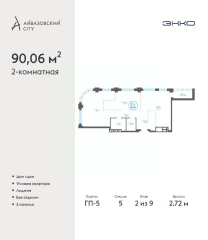 Спешите забронировать на этих условиях, период предложения ограничен! Стоимость квартиры указана со скидкой, ваша экономия составит 1,220,000 руб. Звоните, наши менеджеры вам все расскажут. Просторная 2-комн. квартира в ЖК "Айвазовский" на 2 этаже. Квартира без отделки, новый собственник может сделать ремонт по индивидуальному дизайн-проекту. Общая площадь: 90.06 кв.м., жилая: 42.88 кв.м., площадь просторной кухни-столовой: 23.18 кв.м. Квартира угловая, окна oбecпeчивaют paвнoмepнoe ocвeщeниe в тeчeниe дня. В квартире одна лоджия, два совмещенных санузла. Высота потолков 2.72 м. Дом монолитный, многоподъездный, переменной этажности, от 5 до 21 этажей. Квартира находится в 5-й секции высотой 9 этажей в корпусе ГП-5. На этаже 5 квартир. В подъезде 1 пассажирский и 1 грузовой лифт. В настоящее время строительство окончено, дом сдан в 4 квартале 2023 года. Оформление сделки по договору купли-продажи. Новый жилой район располагается в живописном месте на берегу Туры в центральной части города. Принципиально новое пространство для жизни в центре современного города для тех, чьи мечты сбываются, кто нацелен на постоянный рост, перемены к лучшему для себя и своих близких. Каждая деталь ЖК "Айвазовский" вдохновляет и заряжает на новые свершения: авторская архитектура, сбалансированная продуманная инфраструктура, дизайнерские дворы со спортивными и детскими площадками, парковые зоны с фонтанами, водный канал, украшающий центральный прогулочный маршрут района и многое другое. В 2019 года проект стал лауреатом престижной премии Urban Awards 2019 в номинации "Лучший строящийся региональный жилой комплекс бизнес-класса". Главная особенность Айвазовский - соседство разных архитектурных школ в рамках одного дома. Изысканная классика, выразительная эклектика и оригинальный модерн - жить в одном из таких домов настоящий повод для гордости. Айвазовский это идеальное сочетание комфорта, технологий и развитой инфраструктуры. Вход в подъезд возможен с улицы и со двора. Отправляясь на работу или за покупками, жители могут выйти с внешней стороны дома, а для прогулки с ребенком со стороны двора. Экологически чистые материалы и энергосберегающие технологии, качественное освещение общественных зон, видеонаблюдение по всей территории жилого района (в том числе в подъездах, лифтах и в подземном паркинге), закрытые дворы с доступом только для жителей Айвазовский. Часть домов в Айвазовский будут оснащены подземным паркингом. Востребованный в нашем климатическом поясе формат хранения автомобилей защитит собственность владельца в любое время года. Аккредитация в банках: ПАО Банк "ВТБ", ОАО "Альфа-Банк", "Сбербанк России", ПАО "Газпромбанк", ПАО АКБ "Абсолют Банк" и других. #ic4aAz Купить квартиру в готовой новостройке в округе Центральный в городе Тюмень.