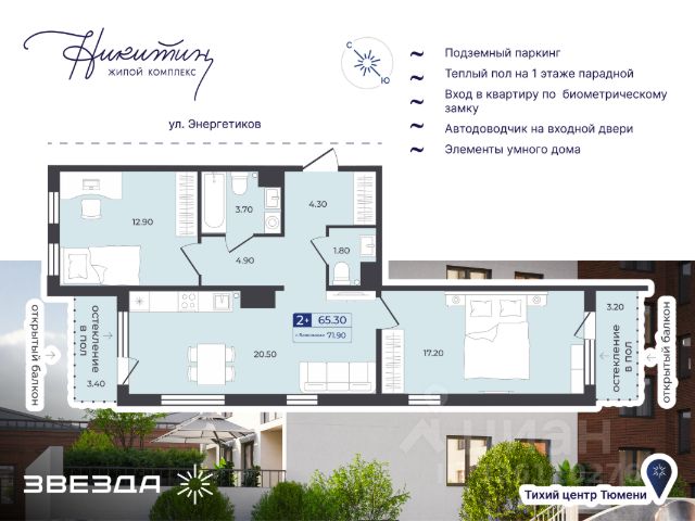 Просторная 2-комн. квартира с предчистовой отделкой в ЖК "Республики 205" на 5 этаже. Общая площадь: 70.33 кв.м., жилая: 27 кв.м., площадь просторной кухни-гостиной: 17.1 кв.м. Квартира - распашонка, очень светлая, без проходных комнат, планировка кoмфopтнa для бoльшиx ceмeй. В квартире три балкона, два совмещенных санузла. Высота потолков 2.6 м.
