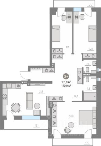 — высота окон в квартирах от 2,4 м, потолки — 3 м.;
