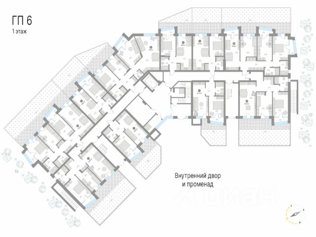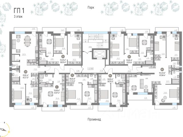 — на первых этажах домов расположены квартиры с террасами, а на верхних этажах — видовые пентхаусы;