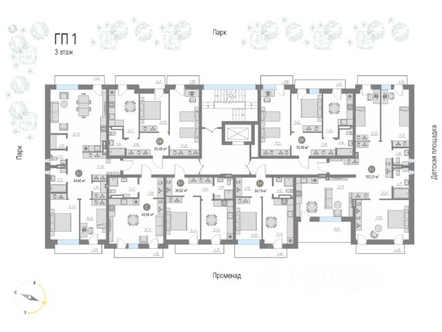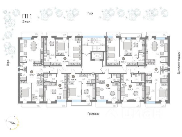 КИПРЕЯ.Квартиры — пешеходный город. Инфраструктура Жилого квартала спроектирована по концепции 15-минутного города, при этом 50% территории это живые изгороди и холмистый ландшафт.