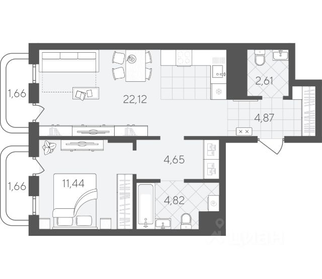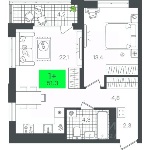 Квартира с ремонтом, санузел в кафеле, инсталляция, ванна, раковина на тумбе, зеркало. Стены выровнены. Кухня в светлом тоне (оттенок ближе к молочному), комната в спокойном синем оттенке, натяжной потолок с точечными светильниками, пол - ПВХ плитка замковое (не клеевая) на подложке, двери с магнитной защелкой. Большая лоджия, вид на Патрушево. 5 квартир на этаже, 2 лифта, колясочная, 2 детские площадки с обеих сторон дома.