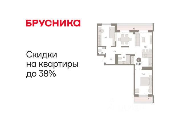 Продаётся квартира площадью 50.32 м2 в жилом комплексе "Смородина". Квартира находится на 2 этаже, жилая площадь квартиры 20.67 м2, площадь просторной кухни — 16.09 м2. Среди особенностей планировки — изолированные комнаты с окнами на одну сторону, 1 совмещённый санузел. Срок сдачи — IV кв. 2026 Жилой комплекс "Смородина" — это: - уютный малоэтажный комплекс в районе ММС - дома высотой 4 этажа - квартиры от студий до семейных вариантов с отапливаемыми лоджиями - экологичные материалы в благоустройстве территории Окружение В 5 минутах ходьбы от проекта — озеро Липовое с песчаным пляжем и лесопарковая зона. Инфраструктура В шаговой доступности есть все для комфортной жизни: школы, детские сады, магазины и аптеки. Рядом с проектом — остановка общественного транспорта. Благоустройство Прямо во дворе — собственные грядки для жителей, где можно выращивать зелень и цветы. Для детей оборудованы детские площадки из натуральных материалов. Лобби Вдохновленные современными тенденциями наши парадные разработаны с акцентом на эстетическую привлекательность и практичность. Использование натуральных материалов и ярких цветовых акцентов создает атмосферу уюта и стиля. Планировки Среди многообразия продуманных планировок есть и уютные студии, и просторные семейные варианты. Во всех квартирах предусмотрены отапливаемые лоджии, где можно устроить зону отдыха или рабочий кабинет. Квартира от застройщика, новостройка комфорт-класса в Тюмени.