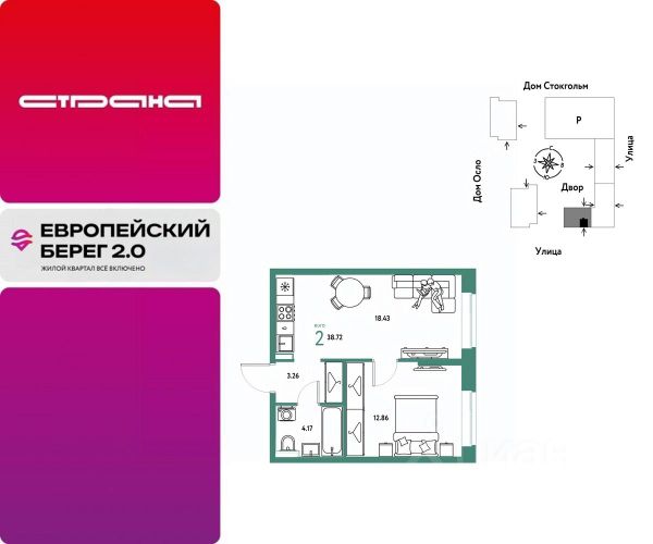 Объявление от застройщика Страна Девелопмент. Покупка квартиры защищена банком. Продается 4комнатная квартира на 20 этаже от застройщика Страна Девелопмент. Площадь квартиры 69,97 кв. м. Стоимость указана без учета акций. Европейский берег 2.0. — это продолжение легендарного жилого комплекса Европейский берег. Он включает все, что нужно для жизни, и даже больше. Этот квартал для тех, кто не готов тратить время на ненужное, жертвовать одним ради другого. Для тех, кто хочет получить все и сразу. Именно поэтому генеральная идея проекта — жилой квартал все включено. Все преимущества включены. Никаких исключений. ПРЕИМУЩЕСТВА Разнообразие планировок: от классических до квартир с мастер-спальней и террасами. Подземный паркинг с кладовыми, охраной и видеонаблюдением 24/7. Ремонт от застройщика: 5 вариантов на выбор. Закрытый двор с площадками и зонами отдыха: мост-акведук, тренажёры, лабиринты, гамаки и шезлонги. ОТДЕЛКА Базовая отделка или готовый ремонт от застройщика. В базовой отделке все черновые работы выполнены, подведены коммуникации, стены оштукатурены под маяк. В ремонт от застройщика входит 5 вариантов отделки, уже включено всё необходимое: от сантехники до кондиционера. СПОСОБЫ ПОКУПКИ Сотрудники "Страны Девелопмент" будут сопровождать вас на каждом этапе сделки, помогут получить одобрение по ипотеке или снизить ежемесячный платеж. - ипотека - материнский капитал - 100% оплата наличными - рассрочка - обмен — это выкуп вашей старой квартиры и зачисление полученных денежных средств в счет стоимости новой квартиры или в качестве первоначального взноса по ипотеке. Квартира в новостройке, покупка на мат. капитал в Тюменской области.