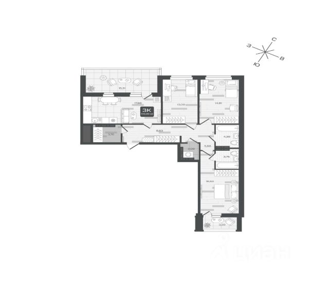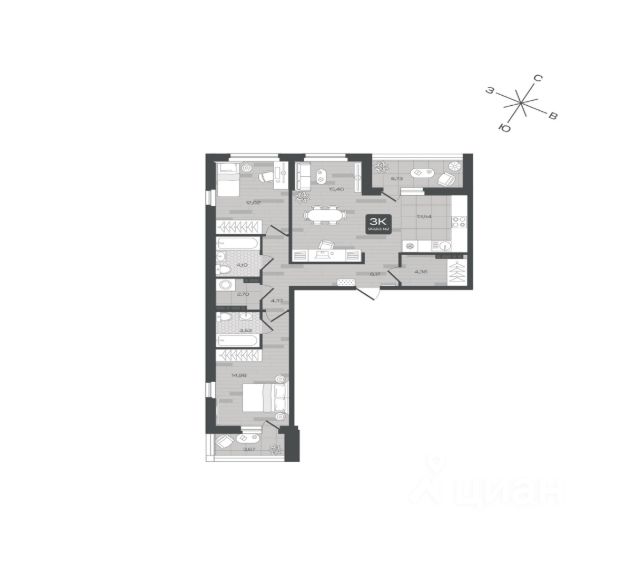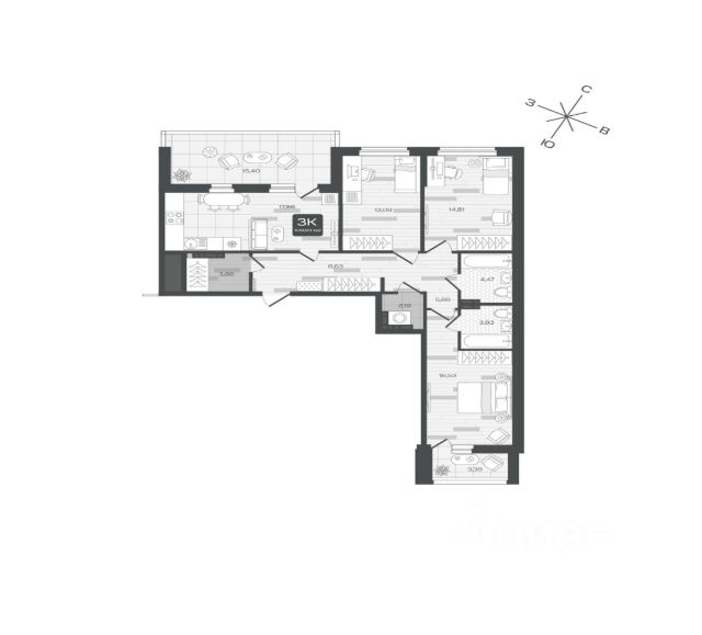 Продаётся квартира площадью 73.10 м2 в жилом комплексе "Дабл-Дабл". Квартира находится на 4 этаже дома, который будет введен в эксплуатацию во 2 квартале 2028 года. Жилая площадь квартиры 27.62 м2, площадь просторной кухни — 17.04 м2. Среди особенностей планировки — изолированные комнаты с окнами на одну сторону, 1 совмещённый санузел. Жилой комплекс "Дабл-Дабл" — это: проект комфорт-класса на Московском тракте дома высотой 15 этажей квартиры от 1-комнатных до 2-уровневых 1 очередь — срок сдачи IV кв. 2025 2 очередь — срок сдачи III кв. 2028 Окружение На границе жилого комплекса — живописный лес. Достаточно открыть окна, чтобы впустить в комнаты ароматы зелени, прохладу и чистый воздух. Благоустройство Юные жители оценят игровые площадки и воркаут-зоны. Любителям неспешных прогулок понравится 2-уровневый променад с панорамным видом и навесами. Лобби Помещения встречают дизайнерскими интерьерами с уютными лаунж-зонами, где удобно подождать курьера или просто сделать паузу перед возвращением домой. Колясочные Возвращайтесь налегке после прогулки с малышом — оставить коляску можно в специальном помещении на первом этаже. Кладовые Благодаря индивидуальным помещениям на техническом этаже сезонные и габаритные вещи будут на своём месте. 2-уровневые квартиры Просторная гостиная и кухня располагаются на первом этаже, спальня и кабинет — на втором. Почувствуйте, как жизнь выходит на новый уровень комфорта и приватности. Панорамное остекление Окна в пол наполняют комнаты светом и стирают границы между домом и природой. Встречайте рассветы или наслаждайтесь огнями вечернего города. Отделка Ровные стены, подготовленные полы и проведённые коммуникации — мы взяли на себя самые грязные и трудоёмкие этапы ремонта. Квартира станет чистым холстом, где легко создать интерьер в любом стиле.
