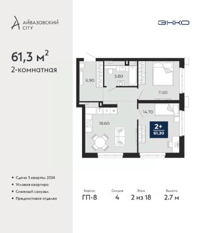 Продаётся квартира площадью 31.81 м2 в жилом комплексе "Смородина". Квартира находится на 2 этаже, жилая площадь квартиры 9.35 м2, площадь просторной кухни — 12.18 м2. Среди особенностей планировки — изолированные комнаты с окнами на одну сторону, 1 совмещённый санузел. Срок сдачи — IV кв. 2026 Жилой комплекс "Смородина" — это: - уютный малоэтажный комплекс в районе ММС - дома высотой 4 этажа - квартиры от студий до семейных вариантов с отапливаемыми лоджиями - экологичные материалы в благоустройстве территории Окружение В 5 минутах ходьбы от проекта — озеро Липовое с песчаным пляжем и лесопарковая зона. Инфраструктура В шаговой доступности есть все для комфортной жизни: школы, детские сады, магазины и аптеки. Рядом с проектом — остановка общественного транспорта. Благоустройство Прямо во дворе — собственные грядки для жителей, где можно выращивать зелень и цветы. Для детей оборудованы детские площадки из натуральных материалов. Лобби Вдохновленные современными тенденциями наши парадные разработаны с акцентом на эстетическую привлекательность и практичность. Использование натуральных материалов и ярких цветовых акцентов создает атмосферу уюта и стиля. Планировки Среди многообразия продуманных планировок есть и уютные студии, и просторные семейные варианты. Во всех квартирах предусмотрены отапливаемые лоджии, где можно устроить зону отдыха или рабочий кабинет. Продам квартиру в новостройке с отделкой в округе Центральный в городе Тюмень.